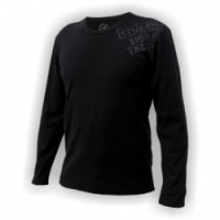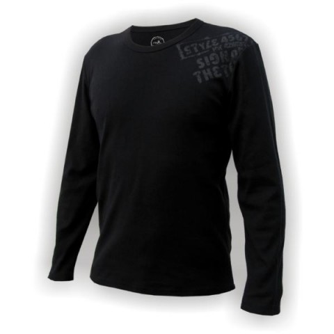 Pánské tričko s dlouhými rukávy klasického střihu. Kulatý výstřih je všitý do lemu ze základního materiálu. Na předním díle jsou u levého průramku natištěny decentní nápisy. Přes rukávy přechází ve dvou řadách ozdobné prošití v barvě potisku. Tričko nabízíme v černé barvě. Materiál - 50% bavlna, 50% polyester.